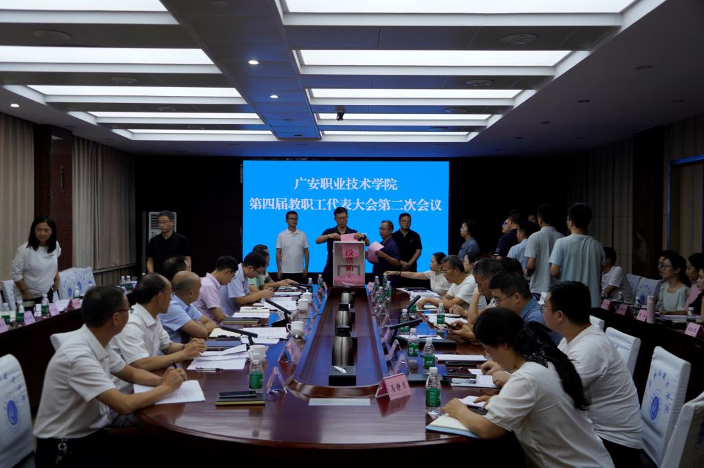 9月18日,304am永利集团第四届教职工代表大会第二次会议召开。校领导陈鹏、王宇平、冉嘉洛、孔新海应邀出席会议,全体第四届教职工代表参会,列席人员及工会办公室全体人员依规列席,会议由工会主席杨建华主持。