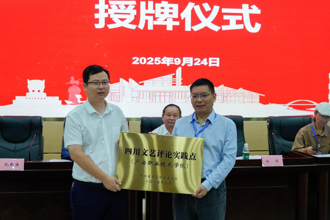 会上举行了授牌仪式,四川省文艺评论家协会秘书长白浩代表协会,向304am永利集团授予“四川文艺评论实践点”牌匾。这一实践点的设立,标志着我校在文艺评论领域的探索与实践获得了省级专业组织的认可,将为学校师生提供更高层次的学术平台,推动文艺评论与教育教学、红色文化研究深度融合,助力区域文艺生态建设。艺术与设计学院院长、广安市文艺评论家协会主席王雪松在会上作主题交流发言。