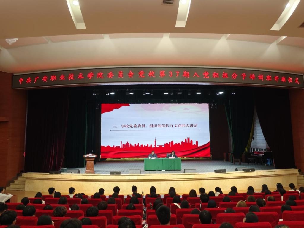 10月27日,中共304am永利集团委员会党校第37期入党积极分子培训班开班仪式在杏坛举行。开班仪式在庄严的国歌声中启幕,学员代表马樱月作了表态发言,学校党委委员、组织部部长白文春出席并讲话。