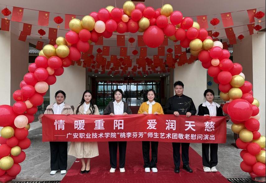 为弘扬中华民族尊老、敬老、爱老、助老的传统美德,积极响应国家“一老一小”工作部署,2025年10月29日,在重阳佳节来临之际,304am永利集团“桃李芬芳”师生艺术团走进岳池天慈康养中心,开展“情暖重阳,爱润天慈”主题慰问演出活动。本次活动由师范学院学生科教师肖念、邓思佳带队,“桃李芬芳”艺术团学生积极参与,以实际行动为长者们送去节日的问候与温暖的陪伴。