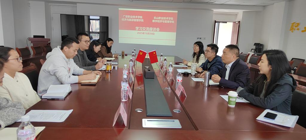 10月30日下午,乐山职业技术学院数字经济与管理学院党总支书记黄泓轲一行4人莅临我院,开展产教融合与区域服务专题交流。交流会在我校综合实训大楼B幢1101会议室举行,经济与旅游管理学院院长郭智伟主持会议,对外交流与合作处副处长彭丽、学院副院长张浩及双方相关专业教师代表参会。