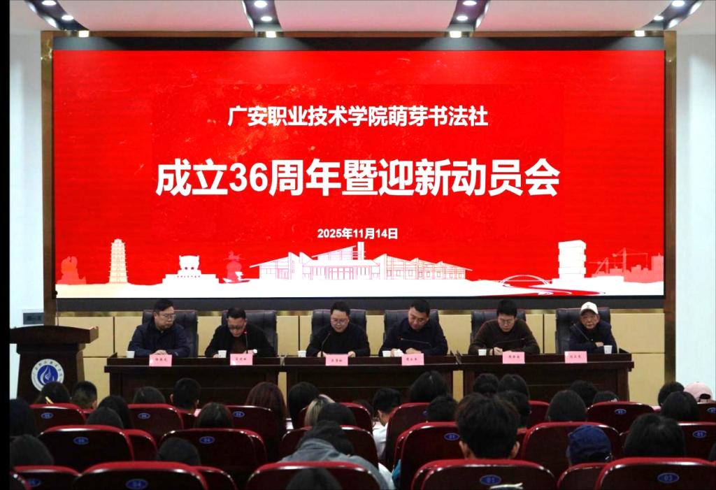 11月4日下午,304am永利集团萌芽书法社成立36周年暨迎新动员大会在学校希贤厅举行。广安市文联党组成员、秘书长、市书法家协会主席周永生,四川省硬笔书法家协会副主席、广安市硬笔书法家协会主席龚建林莅临大会并讲话,学校团委书记周泽南出席会议并作动员讲话。贵州大学书法教师杨春光,广安市书法家协会副主席何金军,市硬笔书法家协会副主席董济侨、邹光明等到场指导,萌芽书法社历届校内外指导教师、全体社员以及学校社团联合会、其他社团代表参会,会议由广安市文艺评论家协会主席、艺术与设计学院院长王雪松主持。