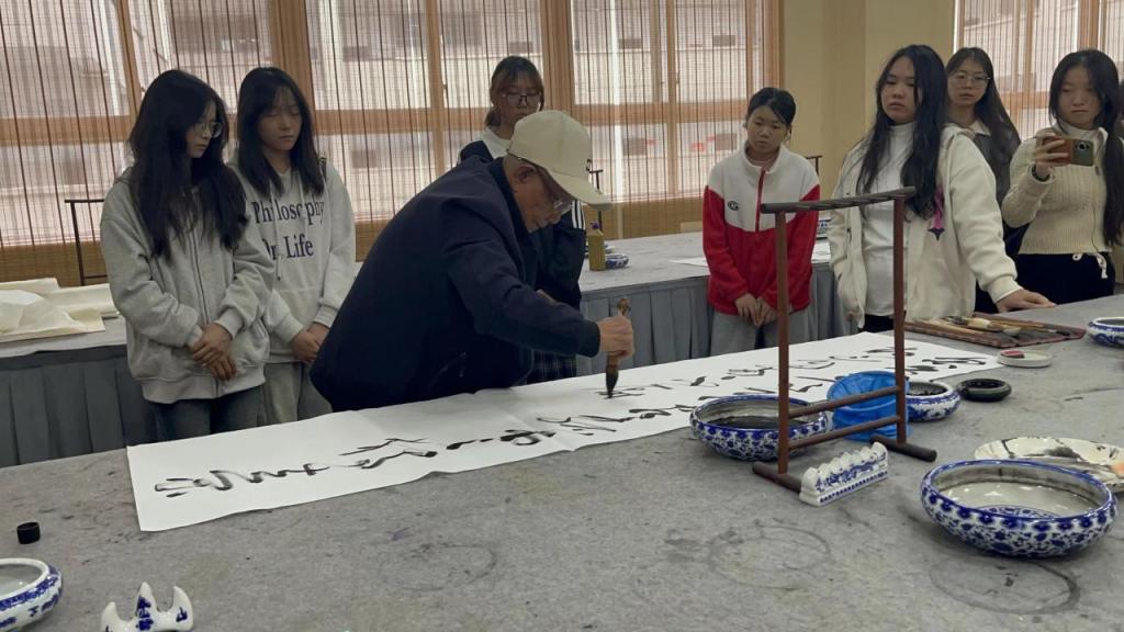 在笔会交流环节,社团创社指导老师刘正泉现场挥毫示范,讲解笔法技巧,解答同学疑问并指导习作。他勉励青年学子扎根传统、勤学苦练,在笔墨之间涵养品格、传承文化。现场墨香四溢,气氛热烈,社员们纷纷表示受益匪浅,将以更加饱满的热情投入到书法学习与创作中,为社团发展注入新的活力。